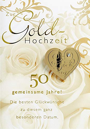 Glückwunschkarte, Grußkarte, KarteGoldhochzeitInklusive Umschlag in: goldKarte zur Goldhochzeit Lifestyle- Rosen, Kristallsticker- 11,6 x 16,6cm...